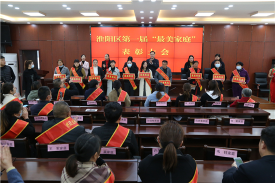 會(huì)議宣讀了《淮陽區(qū)婦聯(lián)關(guān)于表彰第一屆“最美家庭”的決定》;與會(huì)領(lǐng)導(dǎo)為最美家庭進(jìn)行現(xiàn)場頒獎(jiǎng)、頒發(fā)證書和門牌;兩戶“最美家庭”代表分享了家庭故事。