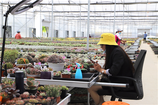 “雙11”剛過,河南“多肉之王”、省電商扶貧帶頭人張國健正帶領(lǐng)著團(tuán)隊在鄲城縣農(nóng)高區(qū)多肉基地為2300多單精準(zhǔn)發(fā)貨。今年38歲的張國健開過挖掘機(jī)、當(dāng)過銷售員,2014年在南方涉足電商時摔了大跟頭,賠了70多萬元?;氐嚼霞野遵R鎮(zhèn)辦了多肉種植基地之后,鄲城縣商務(wù)局等部門與其對接培訓(xùn)了網(wǎng)紅、推薦了人才、在農(nóng)高區(qū)設(shè)立2650平方米的大棚,張國健邁上了快車道,年銷售額在3000萬元以上。今年又增加9個大棚,包括錢店鎮(zhèn)、石槽鎮(zhèn)兩個供貨代養(yǎng)的扶貧大棚,幫扶30多戶貧困戶脫貧,帶動電商從業(yè)人員160余人。