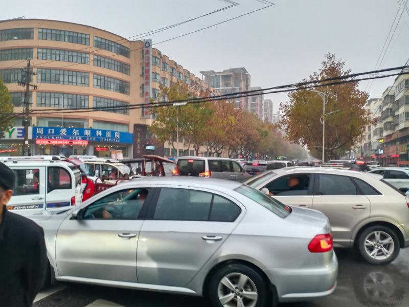 11月17日7時30分許,天空下起了小雨,在這樣的天氣里,開車出行的市民多了起來,記者在周口中心城區(qū)建安路與育新路交叉口附近看到,過往車輛把這里堵了起來,車輛前行緩慢。③7