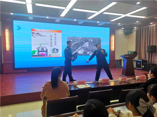 課堂上, 公安民警用鮮活的案例剖析青少年違法犯罪的心理軌跡,讓同學(xué)們做遵紀(jì)守法好學(xué)生。民警們解讀了社會(huì)主義核心價(jià)值觀基本內(nèi)涵和具體要求,教育同學(xué)們要愛黨愛國愛校園愛學(xué)習(xí),做人誠信,做事友善。民警們還教會(huì)學(xué)生們?nèi)绾巫R別毒品,認(rèn)識毒品危害,做到拒絕、遠(yuǎn)離毒品,爭當(dāng)禁毒小小宣傳員。對如何防范被刀棍傷害,民警們演示了書包板凳防護(hù)法。③5