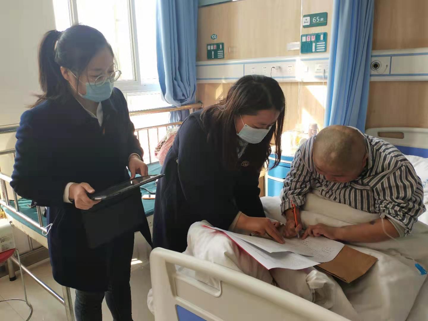 為了更好地服務群眾,沈丘縣婦聯(lián)堅持特事特辦,針對正在縣人民醫(yī)院腫瘤科接受治療的卞路口鄉(xiāng)小郭莊村的盧彩英,縣婦聯(lián)副主席段金花聯(lián)系了中銀富登村鎮(zhèn)的工作人員,到病房現(xiàn)場為其辦理了領取救助金的相關手續(xù)。