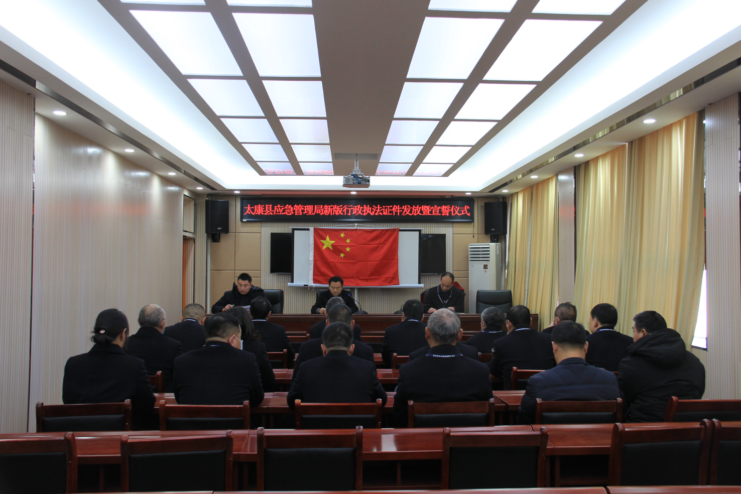 “我是一名行政執(zhí)法人員,我鄭重向祖國、向人民宣誓: 忠于國家,忠于人民,忠于憲法和法律;堅(jiān)持執(zhí)法為民, 堅(jiān)持依法行政,維護(hù)公平正義……”。12月31日上午,太康縣應(yīng)急管理局新版行政執(zhí)法證件發(fā)放暨宣誓儀式上,取得行政執(zhí)法證件的執(zhí)法人員面向國旗莊嚴(yán)宣誓。