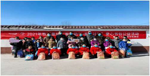 在官莊村“愛心基金會”奉獻(xiàn)愛心的同時(shí),當(dāng)日下午, “牧原集團(tuán)”和鐵爐村愛心人士在鐵爐村發(fā)起愛心捐贈活動(dòng),向158名小學(xué)生贈送了書包和文具盒。