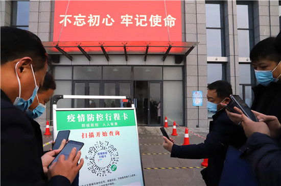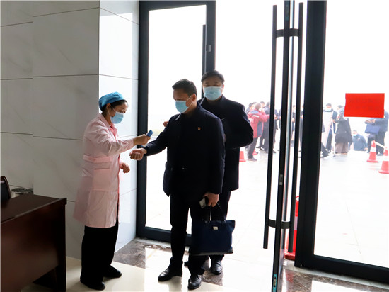 在會(huì)場(chǎng)之外,該縣疫情防控指揮部設(shè)立多重保障守護(hù)大會(huì)安全。在疫情防控常態(tài)化所有人員必須戴口罩的情況下,首先通過(guò)第一重保障,即通過(guò)手機(jī)掃描“通信大數(shù)據(jù)行程卡”,呈“綠碼”方可走向會(huì)場(chǎng)大門(mén);進(jìn)入會(huì)場(chǎng)大門(mén)時(shí),排隊(duì)進(jìn)行體溫監(jiān)測(cè),體溫顯示正常方可進(jìn)入。與此同時(shí),會(huì)場(chǎng)座位按照隔位入座的形式,保障人與人之間的距離超過(guò)50厘米。在多重保障的守護(hù)下,確保大會(huì)順利安全舉行。③5