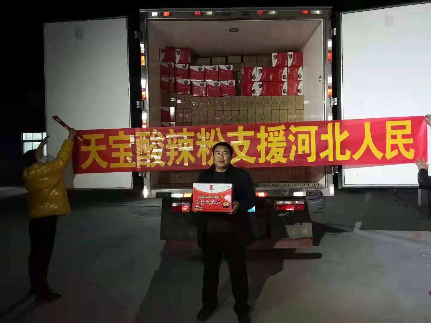 于是,他當即與河北省南宮市相關(guān)防疫部門取得聯(lián)系,天宮那邊欣然接受,并表示感謝。1月20日當夜,便組織召集村上的“鐵桿工人”連夜加班加點生產(chǎn)了價值5萬元共計1萬盒“天寶酸辣粉”,無償捐贈給河北天宮市,送去來自沈丘縣中豫天寶食品有限公司的一片愛心。