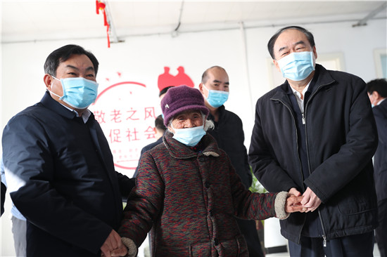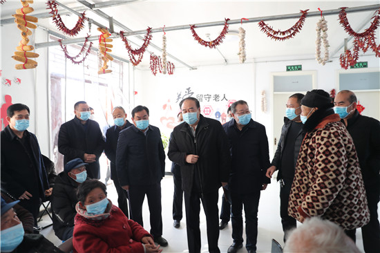 太康縣大許寨格花里行政村居村聯(lián)養(yǎng)點占地5畝,入住特困老人80余人,社會留守老人3人,老人們在這里有吃有穿還有娛樂活動,生活得十分幸福。徐濟超一行走進大許寨鎮(zhèn)葛花李居村聯(lián)養(yǎng)點,向老人們祝賀新春。徐濟超指出,各級各部門要始終堅持以人民為中心的發(fā)展思想,踐行初心使命,聚焦群眾冷暖,用足用好惠民政策,千方百計幫助群眾解決實際問題,讓群眾老有所養(yǎng)、病有所醫(yī)、住有所居,讓大家共享改革發(fā)展成果,確保讓廣大群眾過個歡樂祥和的新春佳節(jié)。