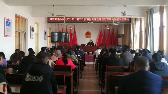 在春節(jié)、元宵節(jié)即將來(lái)臨之際,川匯區(qū)城南街道辦事處開(kāi)展2021年“雙節(jié)”前廉政黨課暨廉潔過(guò)節(jié)集體談話(huà)活動(dòng),要求黨員干部增強(qiáng)廉潔自律意識(shí)、筑牢思想防線,確保過(guò)一個(gè)風(fēng)清氣正的“雙節(jié)”。