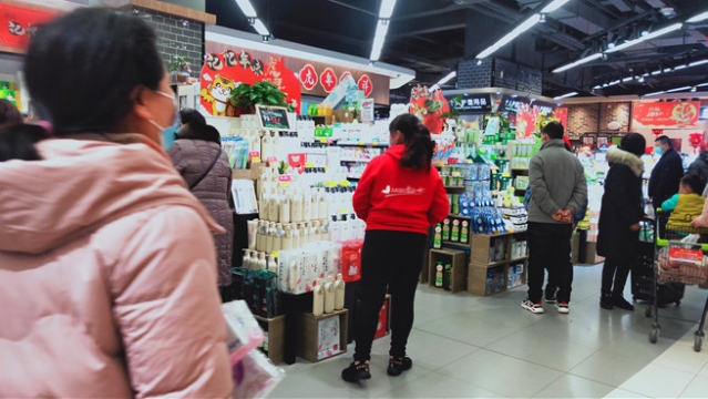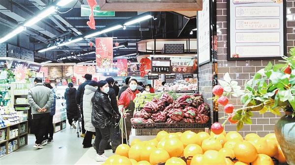 春節(jié)日益臨近,我市中心城區(qū)的各大超市充滿(mǎn)了濃濃的年味兒。1月26日,記者走進(jìn)一家超市看到,各類(lèi)商品擺滿(mǎn)了貨架,糧油、糖品、干貨、生鮮、熟食、水果等品種豐富,一應(yīng)俱全,過(guò)年的氛圍十分濃厚。