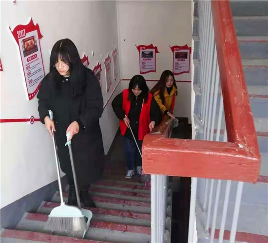 活動(dòng)現(xiàn)場(chǎng),青年志愿者身穿紅馬甲,拎起掃把、拖把、抹布等工具,全力投身到清潔行動(dòng)中,幫助社區(qū)清掃衛(wèi)生死角、清運(yùn)垃圾雜物、清潔樓道窗臺(tái)等,以青春之力積極創(chuàng)造干凈、整潔的節(jié)日環(huán)境。
