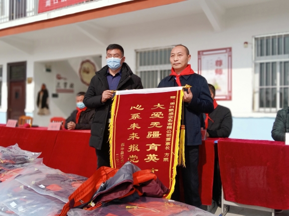 春節(jié)臨近,方凱自掏腰包6萬余元,購買164套新校服捐贈(zèng)給西華縣艾崗鄉(xiāng)半截樓小學(xué),一如既往地將大愛播撒與傳遞。說起方凱的愛心行動(dòng),那是不勝枚舉。方凱10余年來堅(jiān)持幫貧濟(jì)困,每年都采取不同的方式,為貧困戶、貧困大學(xué)生、環(huán)衛(wèi)工、留守兒童、敬老院、貧困學(xué)校、福利中心智障孩子和災(zāi)區(qū)等進(jìn)行愛心捐助,已經(jīng)累計(jì)捐款捐物達(dá)1600多萬元。為了表達(dá)對(duì)方凱的謝意,西華縣艾崗鄉(xiāng)半截樓小學(xué)向方凱贈(zèng)送了“大愛無疆育英才,心系未來報(bào)黨恩”的錦旗,同時(shí),還鄭重聘請(qǐng)方凱為該校名譽(yù)校長(zhǎng)。