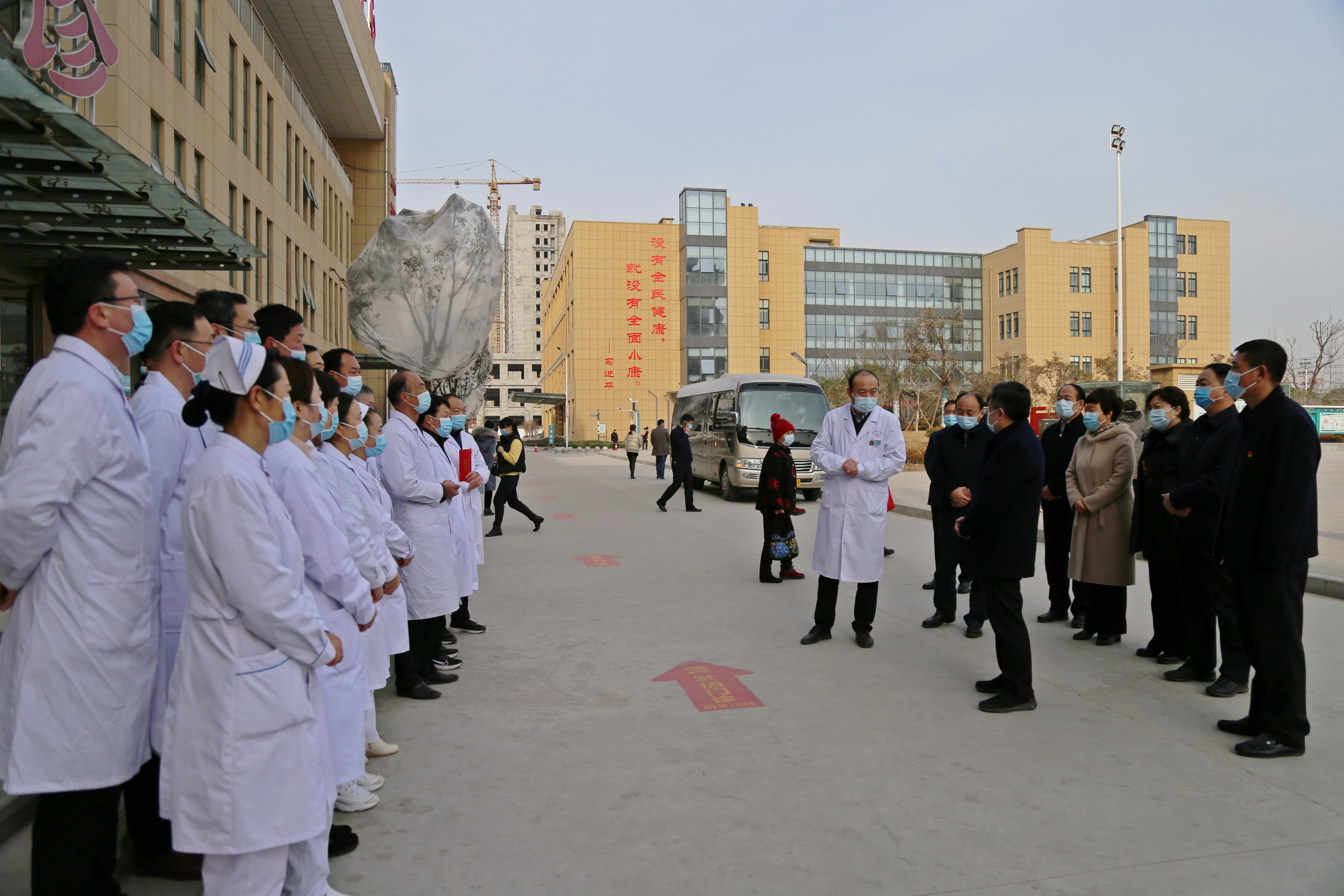 白衣執(zhí)甲、逆行出征。在縣人民醫(yī)院,皇甫立新、劉國(guó)慶代表縣四個(gè)班子和全縣人民向堅(jiān)守在一線的醫(yī)護(hù)人員表示衷心感謝并致以崇高敬意,祝大家新年快樂(lè)、闔家歡樂(lè)?;矢α⑿抡f(shuō),2020年,是極不平凡的一年,自新冠肺炎疫情發(fā)生以來(lái),全縣廣大醫(yī)護(hù)人員舍小家顧大家,義無(wú)反顧的沖鋒在救治一線,不畏困難和危險(xiǎn),連續(xù)作戰(zhàn),為保障人民生命安全和身體健康作出了重要貢獻(xiàn)。希望全縣醫(yī)護(hù)人員繼續(xù)發(fā)揚(yáng)人道主義精神和救援精神,提高救治水平,扎實(shí)做好冬春季疫情防控工作,并再三叮囑一線醫(yī)務(wù)人員一定要合理安排時(shí)間,注意勞逸結(jié)合,做好自身防護(hù)。同時(shí)叮囑醫(yī)院負(fù)責(zé)人要做好醫(yī)護(hù)人員的后勤保障工作,確保大家無(wú)后顧之后,全身心投入到工作去中。