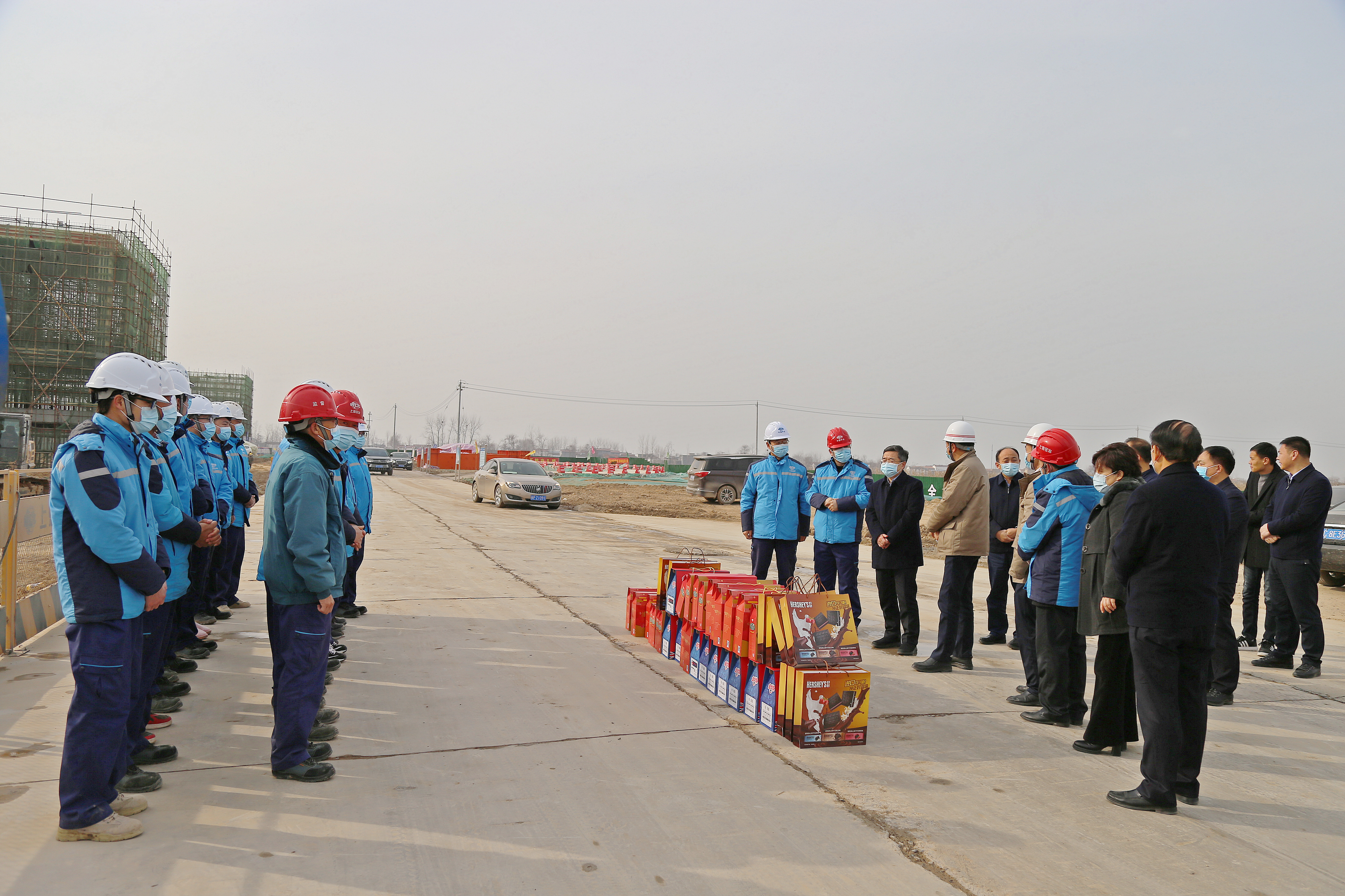 在安鋼產(chǎn)能置換項(xiàng)目部和一期一步施工現(xiàn)場(chǎng),皇甫立新、劉國(guó)慶代表縣四個(gè)班子和全縣人民向奮戰(zhàn)在安鋼產(chǎn)能置換一線的建設(shè)者們表示感謝,并致以新春的祝福?;矢α⑿抡f(shuō),安鋼產(chǎn)能置換項(xiàng)目自落戶(hù)沈丘以來(lái),項(xiàng)目推進(jìn)如此之快,可謂是日新月異,氣勢(shì)恢宏,振奮人心,這既離不開(kāi)省委省政府、市委市政府的關(guān)心支持,更離不開(kāi)建設(shè)者們的辛苦付出。希望廣大建設(shè)者能夠繼續(xù)發(fā)揚(yáng)不怕苦不怕累的敬業(yè)精神,以時(shí)不我待的決心,全面加快項(xiàng)目建設(shè),確保如期實(shí)現(xiàn)2021年5月份建成出鋼的施工目標(biāo),繼續(xù)為周口、沈丘經(jīng)濟(jì)社會(huì)高質(zhì)量發(fā)展作出新的貢獻(xiàn)。