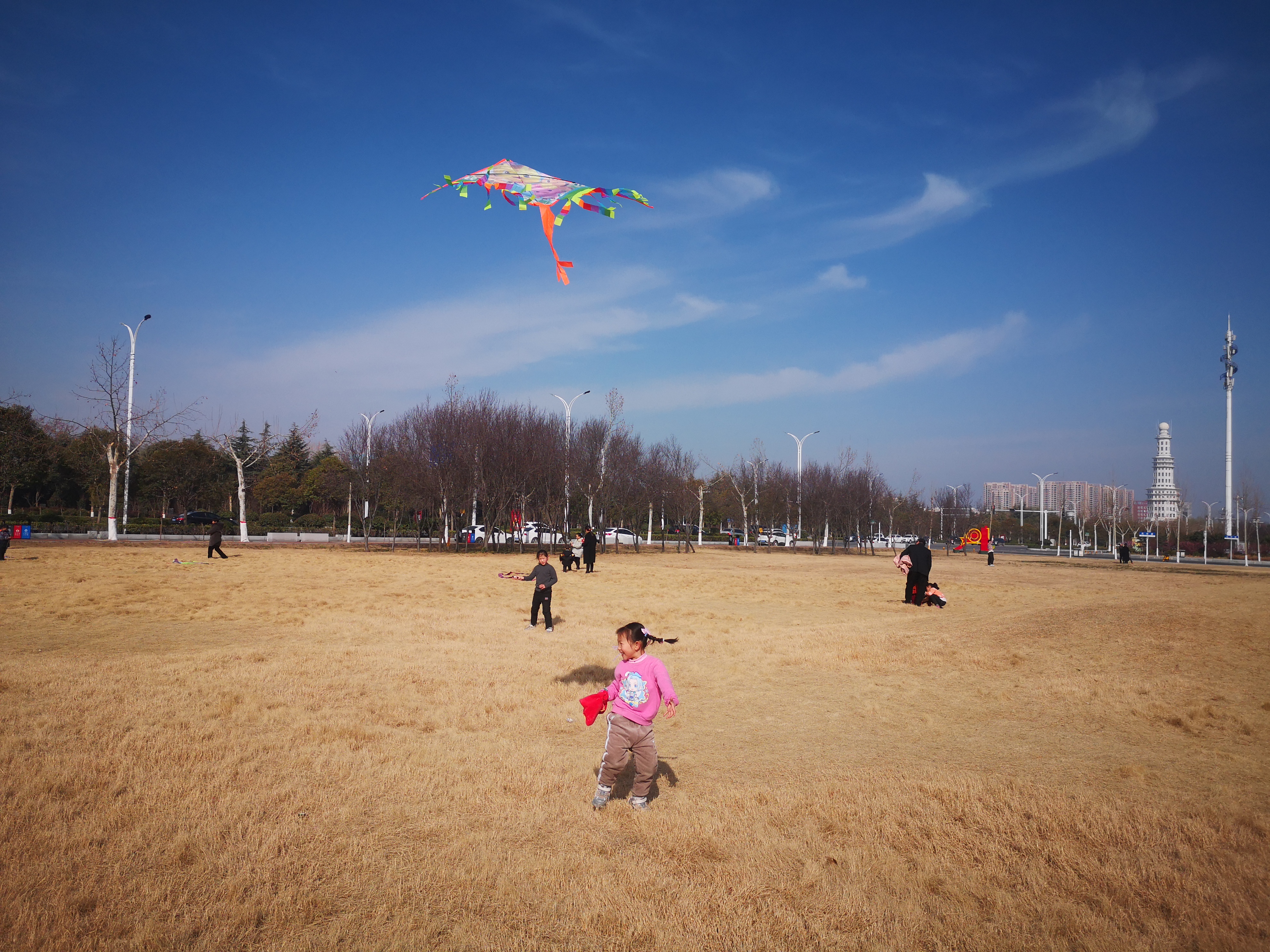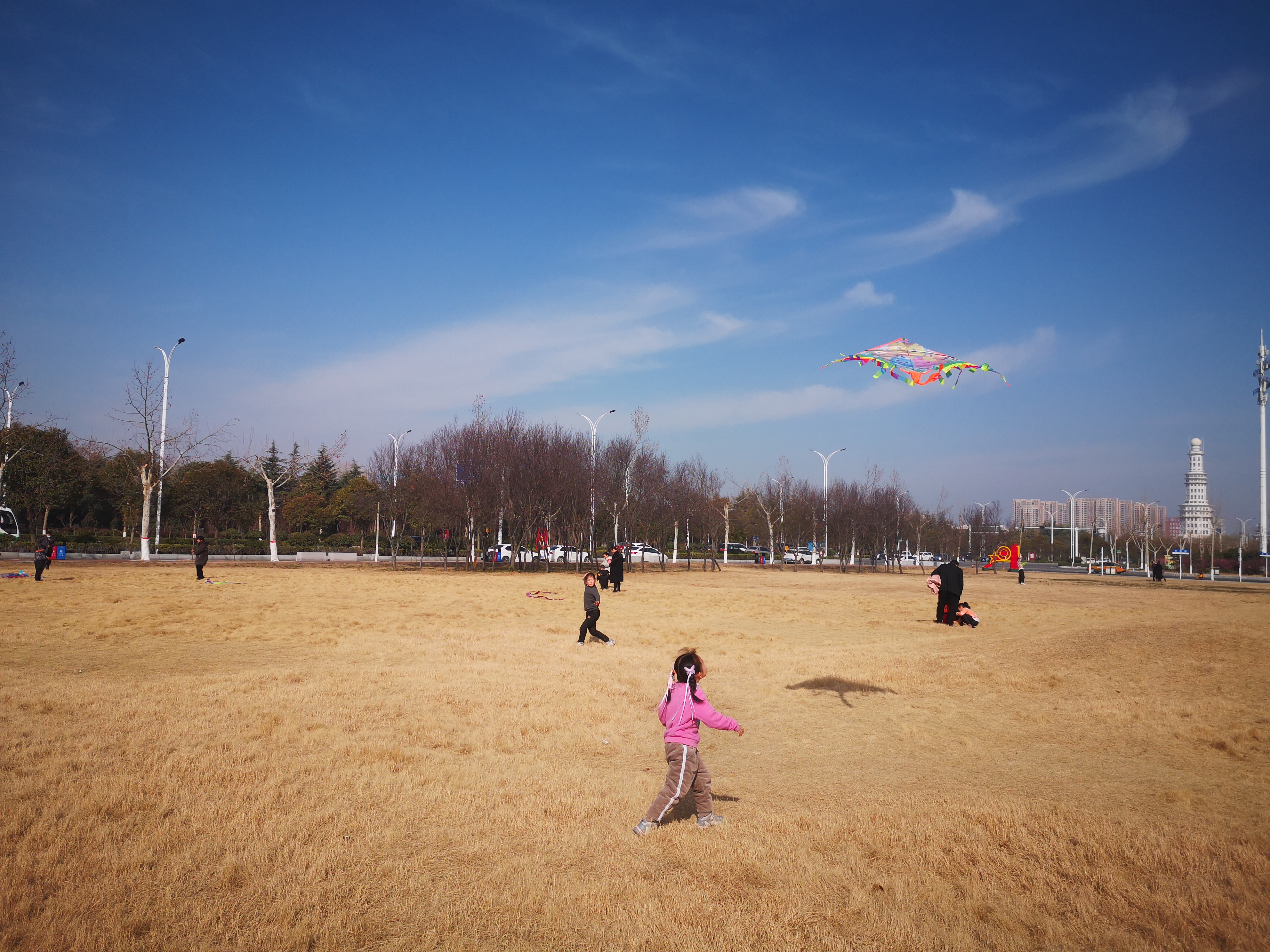 2月16日,周口大道旁邊的大草坪上,小朋友在放飛風(fēng)箏。當(dāng)日,藍(lán)天白云,春光正好,民眾樂享春節(jié)假日。
