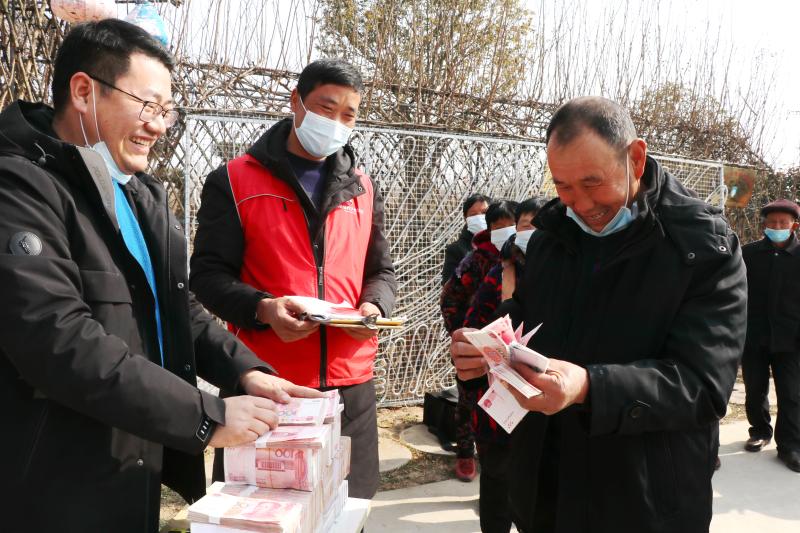 宋傳東、宋建超、王龍、魏端明、張鳳云......村民們領(lǐng)過(guò)錢,歡笑著離開(kāi)現(xiàn)場(chǎng)。當(dāng)日,合作社向村民們發(fā)放了150萬(wàn)元的租金、工資和分紅。涉及城郊鄉(xiāng)池莊行政村的宋莊、毛莊、王菜園和大于行政村的常莊、楊莊等9個(gè)自然村,共計(jì)400戶村民。