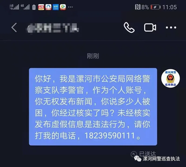 全面了解真相后,為防止謠言傳播,漯河市公安局網(wǎng)警支隊(duì)民警立即利用《漯河網(wǎng)警巡查執(zhí)法賬號(hào)》在該抖音下留言:該信息不實(shí),要求網(wǎng)民不信謠、不傳謠。當(dāng)晚,抖音網(wǎng)民張某看到民警留言后,主動(dòng)刪除了該條視頻作品。