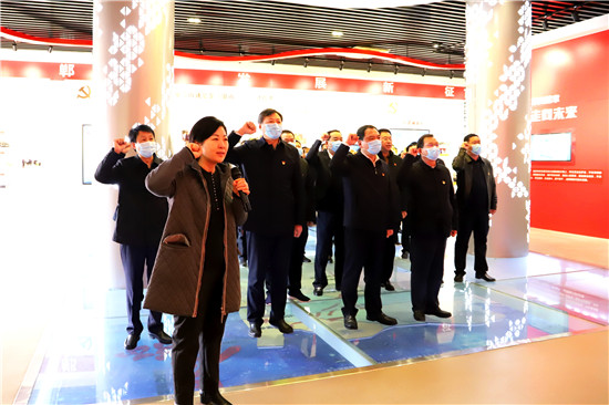 2月18日,新年上班第一天,市人大常委會副主任、鄲城縣委書記羅文閣,縣委副書記、縣長李全林帶領(lǐng)縣四個班子領(lǐng)導和部分縣直單位黨員干部,開展中共黨史學習教育活動,激勵全縣各級黨員干部不忘初心、牢記使命,在新時代不斷加強黨的建設(shè),更加緊密地團結(jié)在以習近平同志為核心的黨中央周圍,始終保持永不懈怠的精神狀態(tài)和一往無前的奮斗姿態(tài),振奮精神,堅定信心,銳意進取,真抓實干,奮力譜寫全面建設(shè)社會主義現(xiàn)代化鄲城新篇章,以優(yōu)異成績迎接建黨100周年。