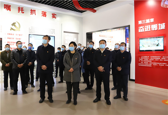 2月18日,春節(jié)過(guò)后上班第一天,市人大常委會(huì)副主任、鄲城縣委書(shū)記羅文閣,縣委副書(shū)記、縣長(zhǎng)李全林帶領(lǐng)縣四個(gè)班子領(lǐng)導(dǎo)和部分縣直單位黨員干部,開(kāi)展中共黨史學(xué)習(xí)教育活動(dòng),激勵(lì)全縣各級(jí)黨員干部不忘初心、牢記使命,在新時(shí)代不斷加強(qiáng)黨的建設(shè),更加緊密地團(tuán)結(jié)在以習(xí)近平同志為核心的黨中央周?chē)?,始終保持永不懈怠的精神狀態(tài)和一往無(wú)前的奮斗姿態(tài),振奮精神、堅(jiān)定信心,銳意進(jìn)取、真抓實(shí)干,奮力譜寫(xiě)全面建設(shè)社會(huì)主義現(xiàn)代化鄲城新篇章,以優(yōu)異成績(jī)迎接建黨100周年。