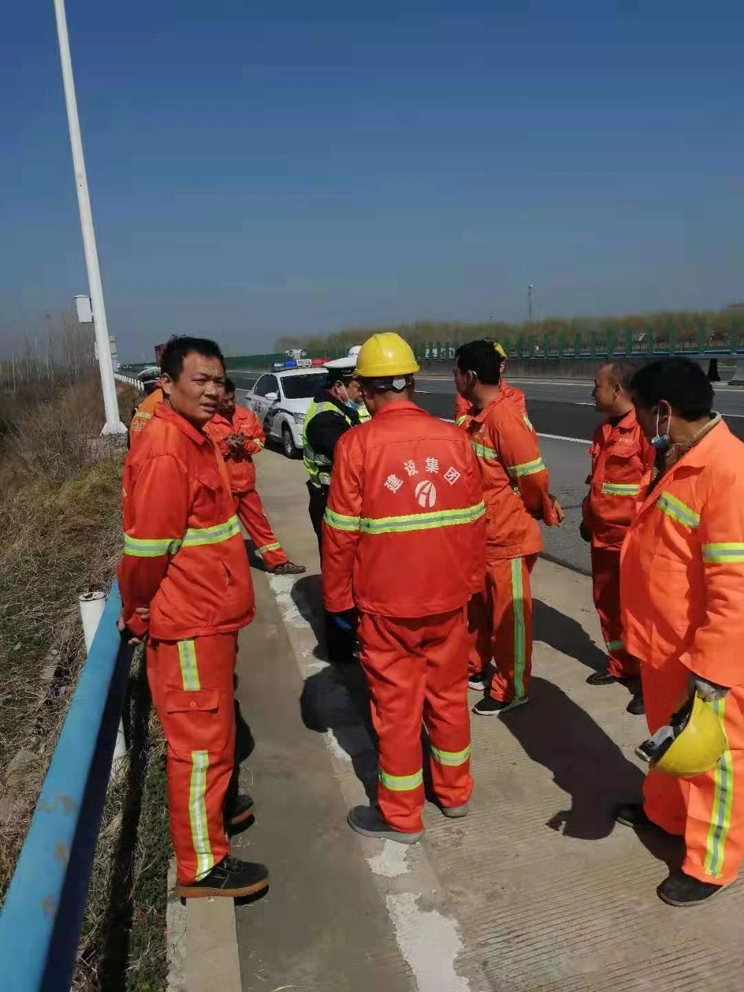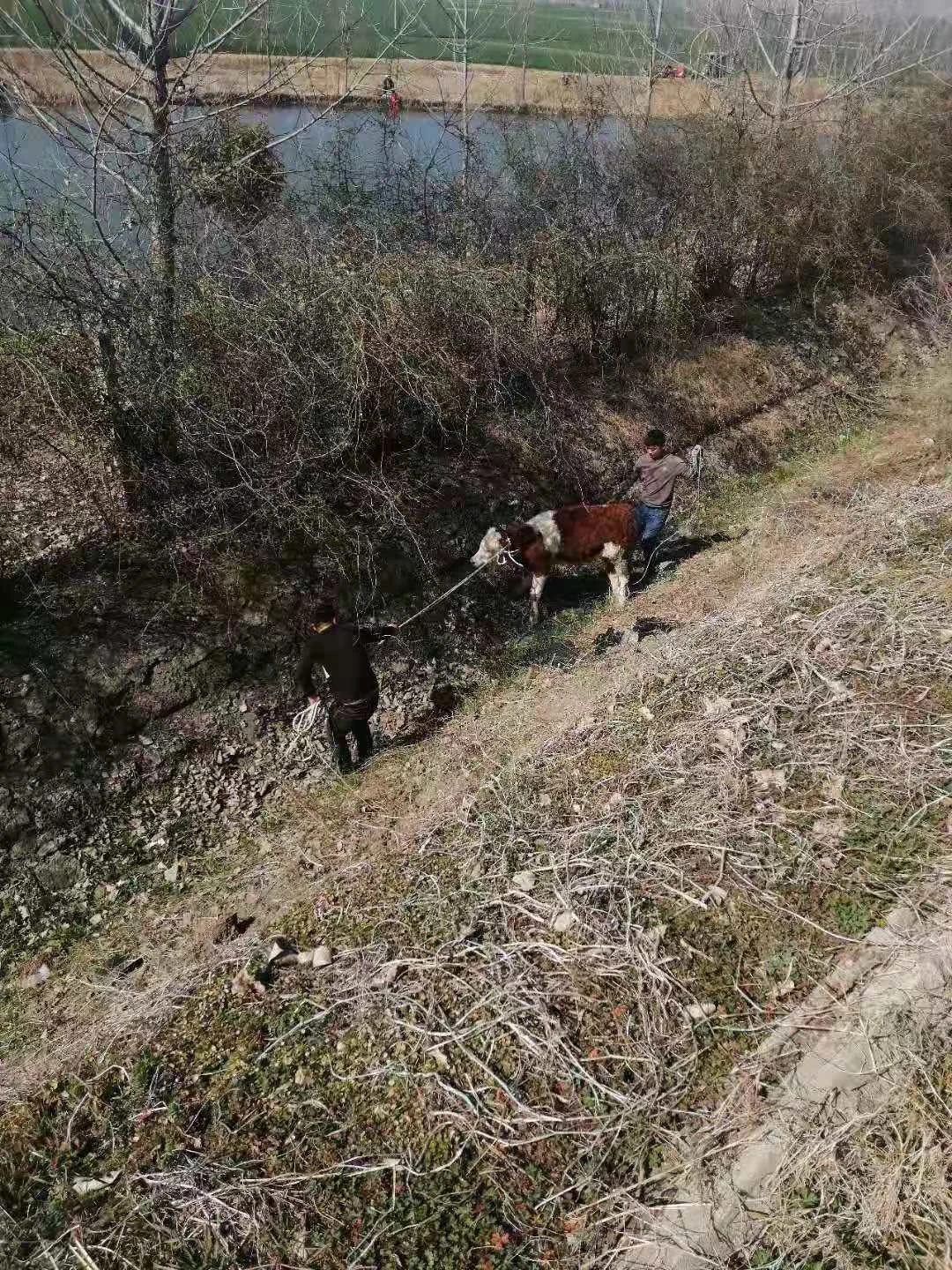 接警后,距離事發(fā)地點(diǎn)最近的周口高速二大隊(duì)項(xiàng)城中隊(duì)值班民警迅速趕往現(xiàn)場(chǎng)。民警到達(dá)現(xiàn)場(chǎng)后了解到,一輛專業(yè)運(yùn)輸肉牛貨車從北方到南方運(yùn)輸肉牛,有兩頭牛在行駛途中突然受驚撞破了車上鋼管圍欄跳到了高速公路上,其中一頭又越過(guò)中央隔離護(hù)欄跑到了對(duì)向車道。一輛行駛中轎車躲避不及與牛發(fā)生碰撞,導(dǎo)致車輛嚴(yán)重?fù)p壞,牛被撞死。另一頭沿著高速公路護(hù)欄來(lái)回折騰著跑,過(guò)路車輛紛紛躲避,形勢(shì)也十分危險(xiǎn)。民警立即指揮來(lái)車暫停,招呼司機(jī)等人把牛趕下高速公路邊溝,減少危險(xiǎn),然后分段站在護(hù)欄處把守,讓有捉牛經(jīng)驗(yàn)的車主和司機(jī)在邊溝內(nèi)捉牛。