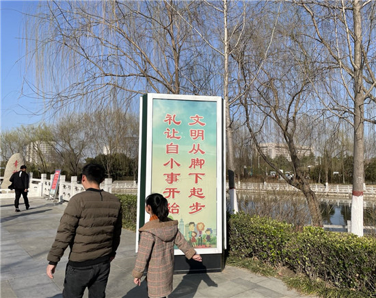 2017年8月18日,周口市委、市政府隆重召開創(chuàng)建全國綠化模范城、國家園林城市、全國雙擁模范城、國家衛(wèi)生城市、全國文明城市提名城市工作動員大會。此后,干部群眾同心同德、共同努力,我市的城市面貌和市民的精神風(fēng)貌發(fā)生了巨大變化。2020年12月16日,周口市第四屆人民代表大會常務(wù)委員會第二十七次會議通過了《周口市文明行為促進(jìn)條例》,該條例已于2021年1月1日實(shí)施。條例中第十四條規(guī)定公民應(yīng)當(dāng)文明旅游,應(yīng)做到服從景區(qū)景點(diǎn)管理,愛護(hù)景區(qū)景點(diǎn)公共設(shè)施;不損害名勝古跡、珍貴文物、古樹名木及其他重要?dú)v史文化遺產(chǎn),不刻畫、不涂污、不攀爬,不違反規(guī)定拍照、攝像、觸摸。在文明出游漸成市民自覺和共識的基礎(chǔ)上,又從制度層面進(jìn)一步引導(dǎo)市民樹立文明出游從我做起、從現(xiàn)在做起的意識。③52021年1月,我市已順利入選全國文明城市提名城市。向全國文明城市沖擊,我們信心百倍。