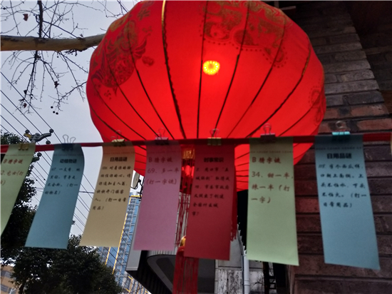 在元宵佳節(jié)到來之際,為倡導(dǎo)文明過節(jié)理念,營造和諧節(jié)日氛圍,2月26日晚,在交通大道與文明路交叉口西北角市民驛站舉行的趣味元宵節(jié)猜燈謎活動贏得了市民的熱情參與。