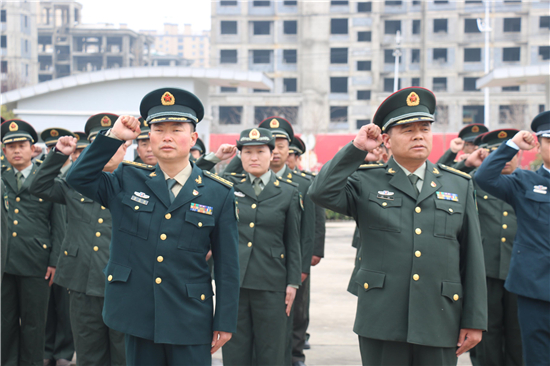 2月26日下午14時,西華縣人武部營區(qū)內(nèi),鮮紅的黨旗迎風(fēng)飄揚。來自全縣17個鄉(xiāng)鎮(zhèn)、5個城區(qū)辦事處武裝部的全體專武干部黨員與該部現(xiàn)役干部、文職、職工黨員共計60余人集聚這里,隆重集體過“政治生日”。