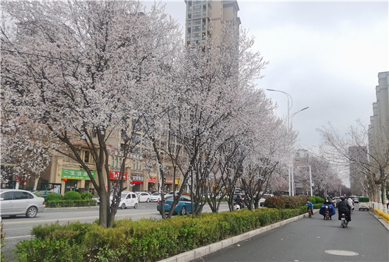 3月1日,慶豐街道兩邊的紫葉李花開似雪,紫葉李貫穿整個(gè)慶豐街,形成了一道靚麗的風(fēng)景。盛開的紫葉李花瓣兒呈白色或粉色,微風(fēng)拂過,花瓣兒飄散在空中,為過往的車輛下起了晴天里的花瓣雨。