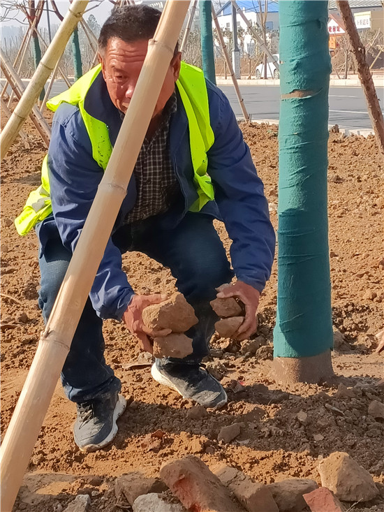 中州大道太清路至周口野生動(dòng)物世界段主體工程基本完工,目前正在進(jìn)行輔助工程的施工。圖為3月4日,幾名工人正在進(jìn)行車道隔離帶和邊道景觀帶的平整綠化。③6