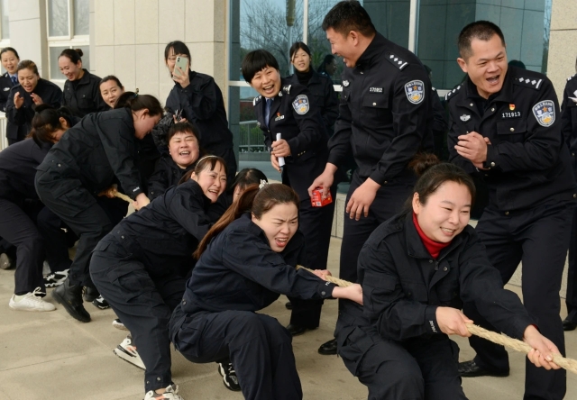此次活動設(shè)置搶凳子、拔河比賽、蒙眼擊鼓等考驗(yàn)個人體力、智力和團(tuán)隊(duì)協(xié)作的運(yùn)動項(xiàng)目,局機(jī)關(guān)、治安、刑偵、交警四個代表隊(duì)參加了活動。上午10時,趣味活動在女警的歡聲笑語中拉開序幕。在搶凳子游戲環(huán)節(jié)中,伴隨著歡快的鼓聲響起,大家緊盯目標(biāo),奮力搶占座位,動作迅速、靈活;在蒙眼擊鼓游戲環(huán)節(jié)中,考驗(yàn)著參賽選手的自身平衡,大家小心翼翼地尋找擊鼓終點(diǎn),一個個呆萌的表情惹得在場觀眾開懷大笑;拔河比賽更是考驗(yàn)著一個團(tuán)體的協(xié)作能力,大家擰成一股繩,拼盡全力,加油聲、吶喊聲、歡笑聲不絕于耳,此時的女警們凝聚力和戰(zhàn)斗力“爆表”,比賽氛圍愈加濃厚。參賽女民警們齊心協(xié)力,奮勇爭先,團(tuán)結(jié)拼搏,一個個看似簡單卻需要精心配合的項(xiàng)目把趣味運(yùn)動會推向一個又一個高潮,整個比賽精彩紛呈、掌聲不斷。經(jīng)過激烈角逐,分別評選出各個項(xiàng)目的個人第一、二、三名,團(tuán)體第一、二、三名,局領(lǐng)導(dǎo)為獲獎集體和個人現(xiàn)場頒發(fā)了榮譽(yù)證書和獎品。