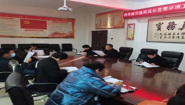 11月25日,西華縣司法局召開優(yōu)化營商環(huán)境工作推進會。該局局長張素貞作重要講話,該局黨組成員、政治部主任徐啟飛主持會議,各相關股室負責人參加會議。