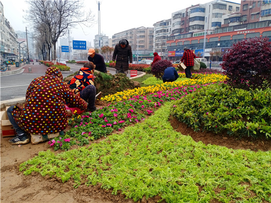 一場(chǎng)春雨過(guò)后,處處洋溢著勃勃生機(jī)。3月20日上午,記者在周口中心城區(qū)大慶路與交通大道交叉口處的紅綠燈旁看到,園藝工作人員正在忙碌著補(bǔ)種花木,黃色、綠色、紅色的花兒平鋪在一起組合成一道亮麗的風(fēng)景,扮靚了街頭,令人賞心悅目。③2