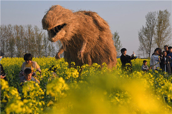 4月5日上午,在商水縣鄧城鎮(zhèn)沙潁河畔萬畝油菜花海,來自周邊縣市區(qū)和附近鄉(xiāng)鎮(zhèn)的群眾一撥接一撥地駕車到這兒打卡游玩,特別是卡通稻草人景點內(nèi)熱鬧非凡。