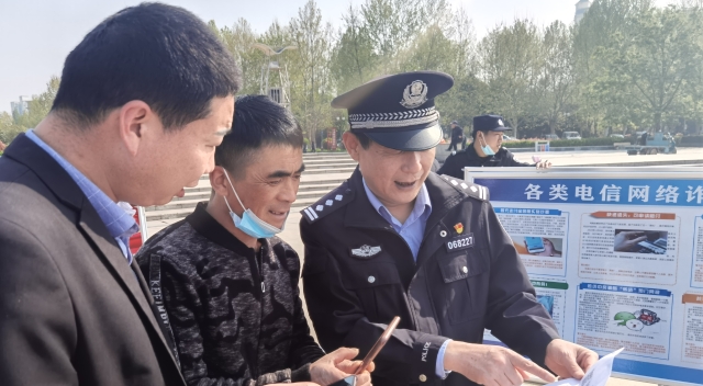 連日來(lái),鄲城縣公安局反詐宣傳如火如荼,民警王冰等奔走在各社區(qū)、商場(chǎng)、廣場(chǎng)、公園、街道、沿街商鋪,廣泛宣傳反詐常識(shí),推廣注冊(cè)金鐘罩,散發(fā)宣傳頁(yè),張貼宣傳通告,守護(hù)好群眾的“錢袋子”。