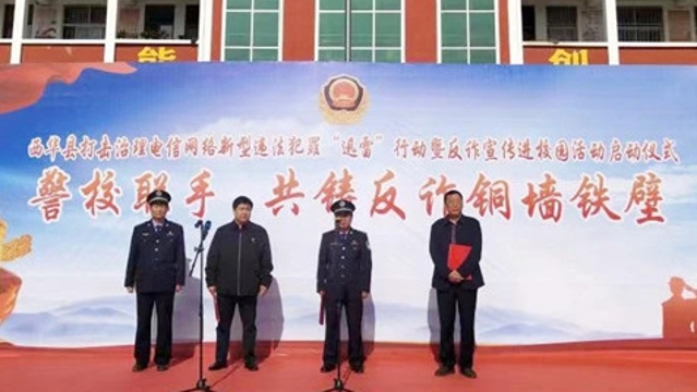 近日,鄲城縣公安局女子反詐宣傳隊(duì)負(fù)責(zé)人王冰等與縣公安局反詐中心民警一起,來(lái)到寧平一中,開展反詐騙、防溺水宣傳。寧平鎮(zhèn)鎮(zhèn)長(zhǎng)王樹勤參加活動(dòng)。