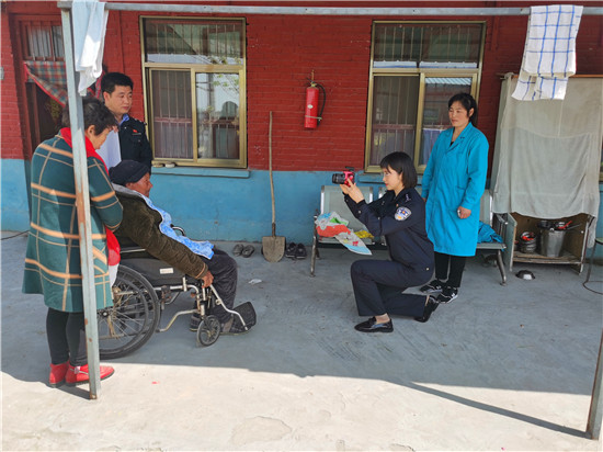 在大王樓敬老院康養(yǎng)的趙中原老人,已經(jīng)八旬有余,因常年臥床,行動不便一直未能辦理二代居民身份證。三月下旬,其突發(fā)疾病,急需辦理醫(yī)保手續(xù)入院治療。但由于沒有身份證無法辦理相關(guān)手續(xù),這可急壞了敬老院負責人和工作人員。按正常程序,需要帶老人去派出所戶籍室采集人像及指紋信息,由于老人年邁又行動不便,他們選擇向沈丘縣公安局西關(guān)派出所求助。接到電話后,西關(guān)派出所戶籍民警王欠積極與社區(qū)民警高坤朋一道前往敬老院。為了采集到合格信息,王欠與敬老院工作人員固定好老人坐姿,自己單膝下跪,為趙中原老人拍照。由于老人年邁且長期臥床,坐姿和面部表情不好調(diào)整,王欠反復十余次單膝跪地,才采集到合格的人像信息。