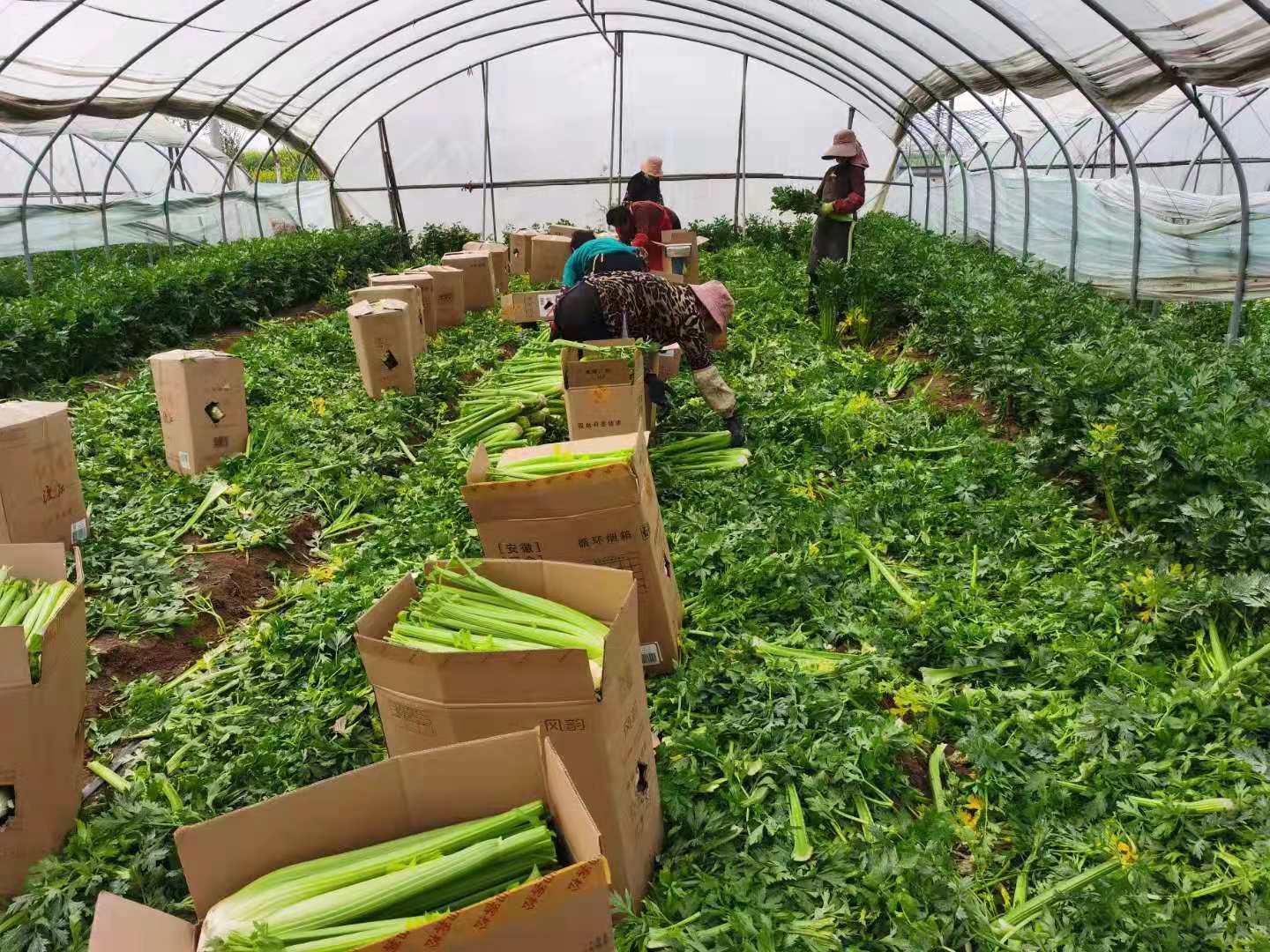 走進(jìn)萬(wàn)畝芹菜種植基地蔬菜溫棚,一股傘形科植物特有的芳香充滿鼻腔。抬眼一瞅,裝箱好的芹菜整齊碼放成垛,溫棚深處,還有大片未收割的芹菜,挺直鮮嫩,綠意蔥蘢。大棚里菜農(nóng)們收割、打包、貼二維碼一氣呵成,道路兩旁十幾名從全國(guó)各地趕來(lái)的收購(gòu)商從菜農(nóng)手中接過包裹急忙裝車。