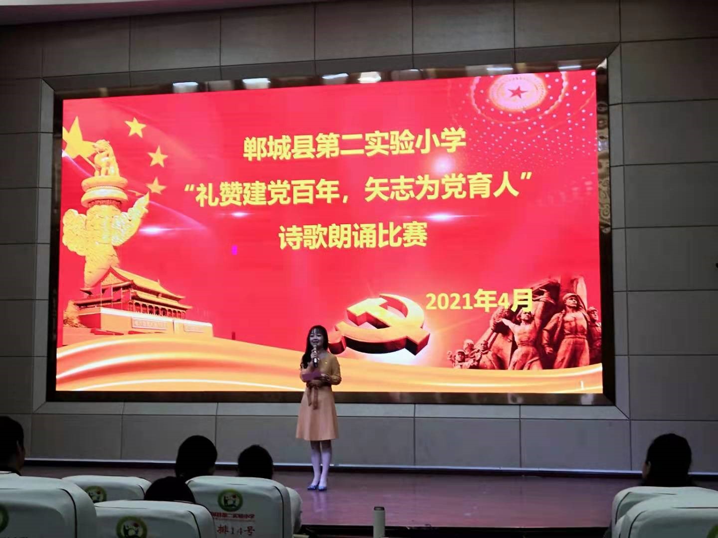 4月14日,鄲城縣第二實(shí)驗(yàn)小學(xué)舉行關(guān)于“百年榮光·每個(gè)人都了不起”系列主題活動(dòng)——獻(xiàn)禮建黨100周年詩歌朗誦比賽。26位教師分10支代表隊(duì)參賽。