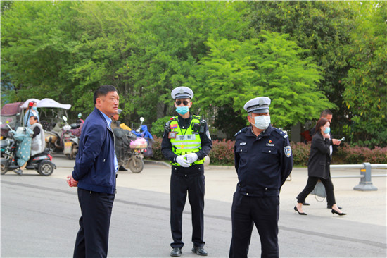 4月16日,鄲城一高舉行第12屆18歲成人儀式暨奠基高考決勝2022誓師大會(huì)。鄲城縣公安局副局長(zhǎng)朱衛(wèi)兵率領(lǐng)交警鐵騎隊(duì)兵分4路,從早上7時(shí)至上午11時(shí)在學(xué)校周圍維護(hù)交通秩序,確保數(shù)千名家長(zhǎng)的車輛有序停放,疏堵保暢。