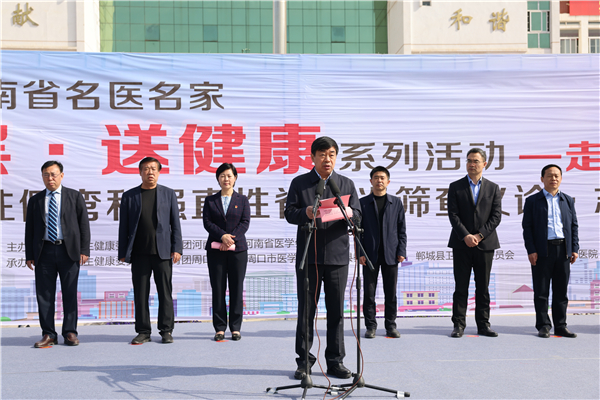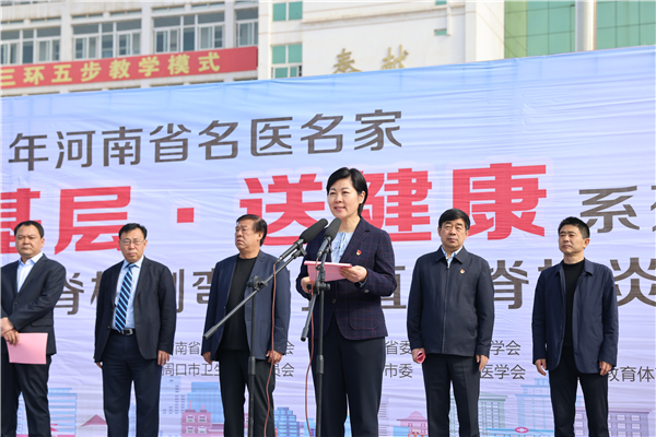 河南省衛(wèi)健委副主任劉延軍,光明日?qǐng)?bào)社河南站站長(zhǎng)王勝昔,省衛(wèi)健委宣傳處處長(zhǎng)楊力勇,省醫(yī)學(xué)會(huì)副會(huì)長(zhǎng)兼秘書長(zhǎng)王偉,省人民醫(yī)院副院長(zhǎng)張連仲,團(tuán)河南省委學(xué)校部副部長(zhǎng)張艷斌,省骨科學(xué)會(huì)主任委員、省人民醫(yī)院脊柱脊髓外科主任高延征,周口市人大常委會(huì)副主任、鄲城縣委書記羅文閣,周口市副市長(zhǎng)秦勝軍,市衛(wèi)健委主任金玉貞,鄲城縣副縣長(zhǎng)張凱,縣衛(wèi)健委主任付登霄,縣人民醫(yī)院院長(zhǎng)于健,縣教體局局長(zhǎng)羅明黨等出席啟動(dòng)儀式。儀式由鄲城縣人民政府縣長(zhǎng)李全林主持。