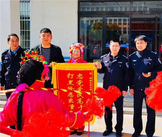 “忠黨愛民高于天,掃黑除惡出重拳。感謝你們神速破案,你們真是群眾的保護神。”5月1日,鄲城縣新城街道辦事處一電動車失主來到新城派出所,送來錦旗,感激地說。