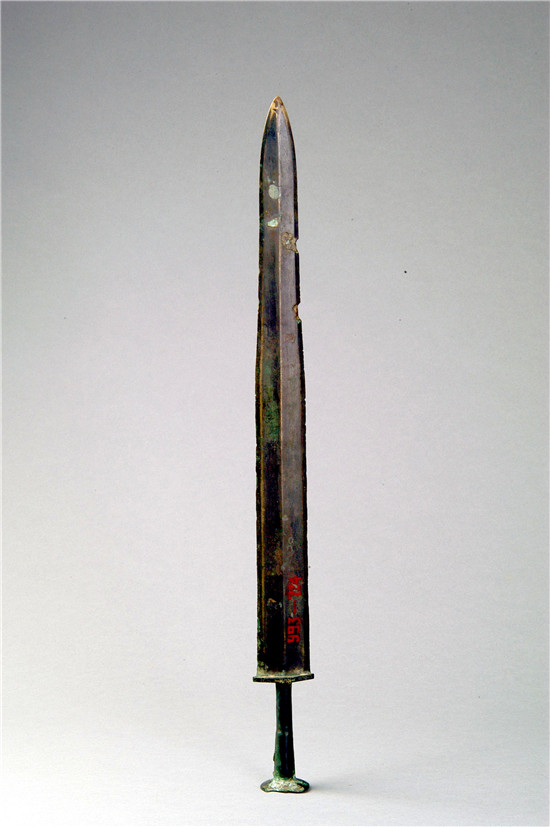 遙想這把戰(zhàn)國錯金越王劍,想必一出世就被寄予厚望,鑄造它的人一定是一位經(jīng)驗豐富的鑄劍師。那個給予它生命的鑄劍師,一定滿懷深切的希望:“如果一個國家有一件先進(jìn)的兵器,那么天下的敵人就會因這件兵器而喪失與你戰(zhàn)斗的信心;如果有兩件先進(jìn)的兵器,那么天下守城的人就不敢再和你對抗。一定要鑄成一把絕世好劍。”他鑄劍時一定專心致志,廢寢忘食,時而沉思,時而低語:“劍脊一定要軟,使用硬度較低的青銅,才能避免受到?jīng)_擊時折斷;劍刃一定要硬,使用硬度較大的青銅,才能保證殺傷力。”這把劍見證了越王不光賞賜軍士的威嚴(yán)和壯觀;見證了楚越交兵時,地動山搖的廝殺場面;見證了車轔轔、馬蕭蕭的滾滾塵煙……之后,它在地下沉睡了漫長的兩千多年。