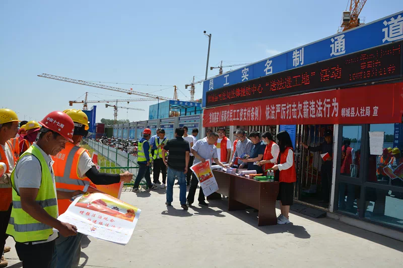 為切實(shí)提升政法隊(duì)伍教育整頓成效,扎實(shí)開展“我為群眾辦實(shí)事”實(shí)踐活動,進(jìn)一步增強(qiáng)農(nóng)民工的法律意識,5月28日,鄲城司法局法律援助中心、鄲城縣人社局勞動監(jiān)察大隊(duì)聯(lián)合組成志愿者服務(wù)隊(duì),來到“建業(yè)桂圓”“潤城二號院”項(xiàng)目工地,開展“心系農(nóng)民工,送法進(jìn)工地”宣傳活動。