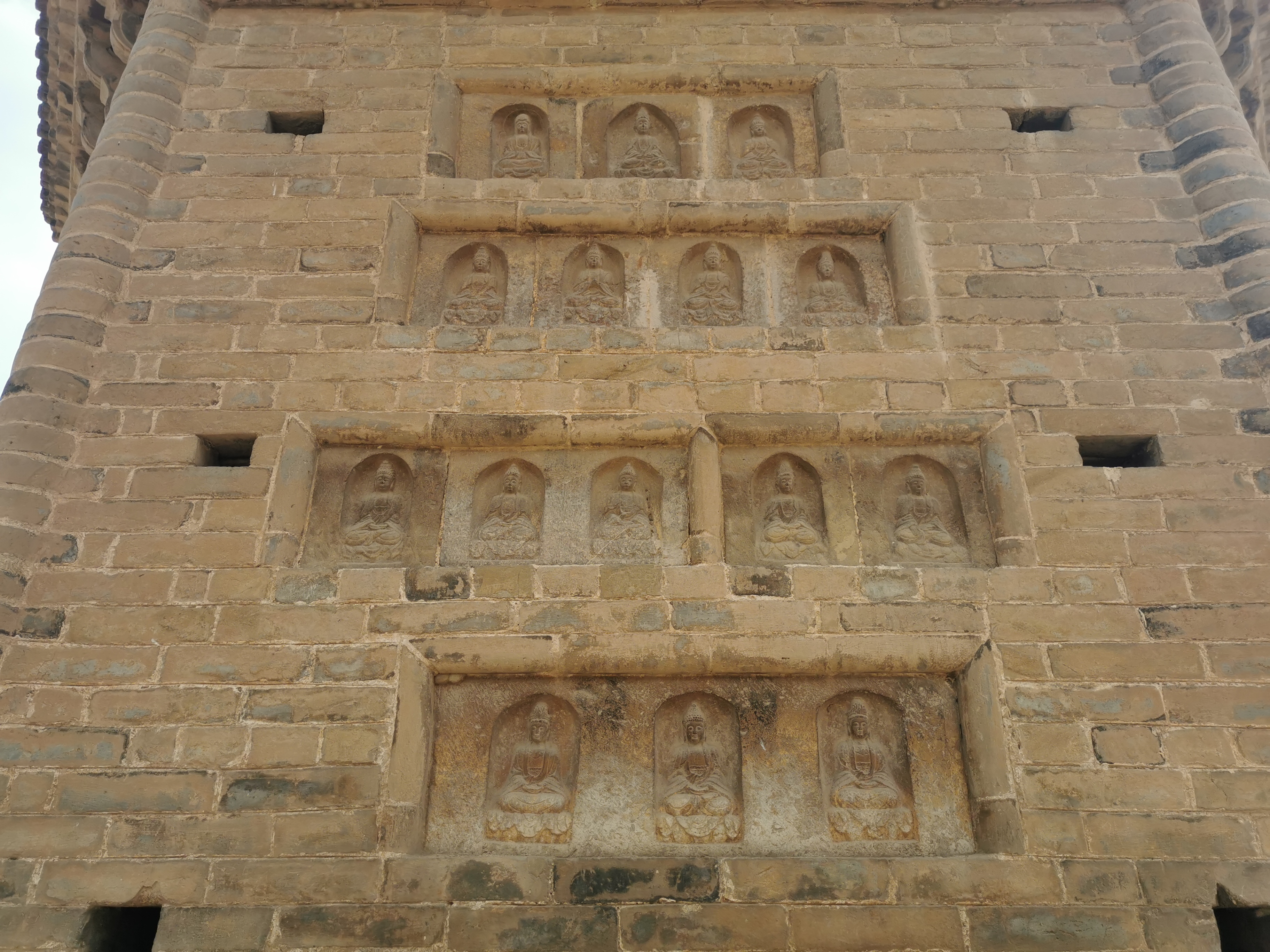 周建山說,唐朝經(jīng)兩宋至遼金時期,是我國古塔發(fā)展的高峰時期。唐宋時期古塔的建筑達到了空前繁榮的程度。首先從建筑年代看,兩塔都始建于重文輕武的北宋時期。當時社會經(jīng)濟繁榮,文化相對發(fā)達,佛教深入社會生活的各個方面,寺院、佛塔等佛教建筑也遍布各地。二是從建筑關系看,都曾是當時著名寺院——壽圣寺建筑群的重要組成部分,后來寺毀而塔存,塔也因寺而得名。三是從建筑藝術看,都具有很高的科學價值。這兩座塔都經(jīng)過了精心設計,地基穩(wěn)固,結構嚴謹,頗具匠心。特別是商水壽圣寺塔在同類建筑中,樣式別具一格,不僅形體高大,而且施有平座、券門、斗拱、破子欞假窗和剎柱,還有建塔題記等,具有重要的文物價值。四是從佛教藝術看,都體現(xiàn)了當時高超的造像藝術水平。商水壽圣寺塔室內(nèi)嵌砌有3尊石雕佛像,太康壽圣寺塔身鑲嵌有211尊石雕佛像,這些佛教藝術造像,莊嚴慈祥,栩栩如生。五是從佛教發(fā)展歷程看,對研究佛教文化及其傳播具有一定的歷史價值。北宋和明代,統(tǒng)治階級都重視佛教,佛教文化相當興盛。這兩座塔都始建于宋、重建于明,就是這種歷史背景下的產(chǎn)物,對佛教文化在豫東大地的傳播,具有實證價值。