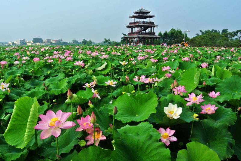 圖2:“接天蓮葉無(wú)窮碧,映日荷花別樣紅”的AAAA級(jí)荷美覃塘景區(qū)。圖片由貴港日?qǐng)?bào)社提供