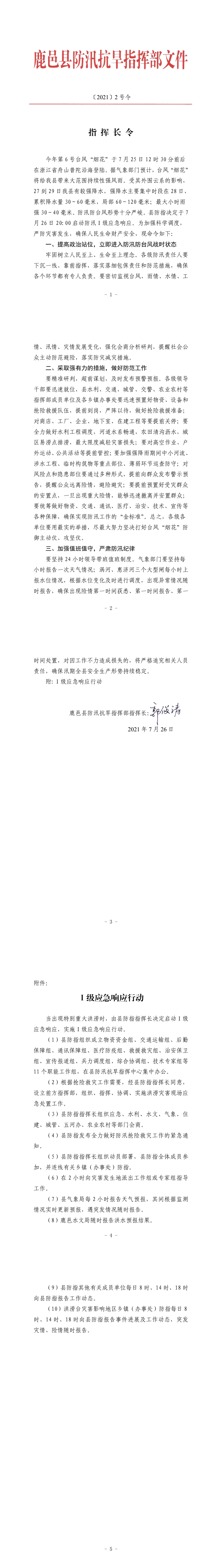 附件:Ⅰ級應急響應行動當出現(xiàn)特別重大洪澇時,由縣防指指揮長決定啟動Ⅰ級應急響應,實施Ⅰ級應急響應行動。
