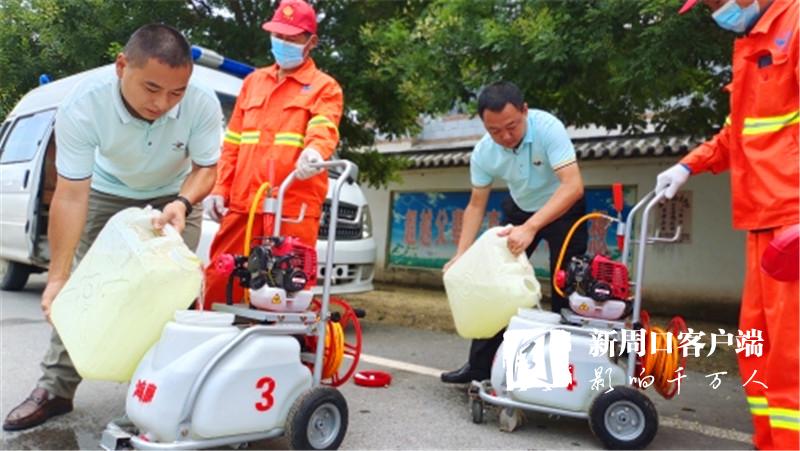 “老關(guān),你們?nèi)膫€(gè)人去女?huà)z景區(qū)消殺。老王,老溫你們兩個(gè)人去村莊消殺,尤其是旮旯處、垃圾堆、屋后等隱蔽重點(diǎn)區(qū)域一定消殺徹底,不留空白。在村莊內(nèi)進(jìn)行消殺時(shí),一定要和群眾交代好防疫消毒時(shí)的注意事項(xiàng)?!?月30日9時(shí)許,來(lái)自廣州市鴻鷹害蟲(chóng)防治服務(wù)有限公司周口分公司的10多名愛(ài)心人士載著4臺(tái)機(jī)動(dòng)手推式滯留噴霧機(jī)、1臺(tái)電動(dòng)背負(fù)式超低容量噴霧機(jī)、1臺(tái)大型車載式超低容量噴霧機(jī)和230公斤消毒劑,來(lái)到西華聶堆鎮(zhèn)思都崗村后,該公司負(fù)責(zé)人許金山就向工作人員一一分配消殺任務(wù)。