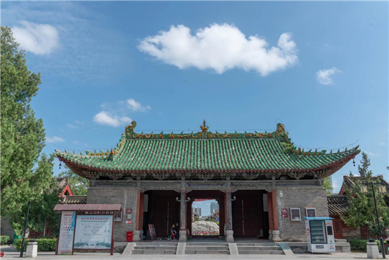 整個古建筑群為仿宮殿式,山門、鐵旗桿、石牌坊、碑亭、饗殿、大殿、河伯殿、炎帝殿、戲樓、拜殿、春秋閣由南向北,建于中軸線上,藥王殿、灶君殿和東廊房,財神殿、酒仙殿及西廊房在前院左右,東西看樓、東西配殿建在中院兩側(cè),老君殿、馬王殿、瘟神殿為東偏房,客房僧舍位于西院。是全國重點(diǎn)文物保護(hù)單位,國家AAAA級旅游景區(qū),國家三級博物館。
