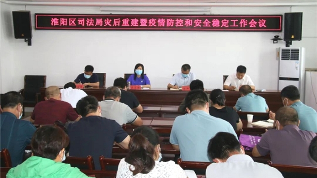 • 近日,淮陽(yáng)區(qū)司法局召開專題會(huì)議,傳達(dá)貫徹全國(guó)、省、市、區(qū)關(guān)于做好當(dāng)前疫情防控、災(zāi)后重建和安全穩(wěn)定工作會(huì)議精神。
