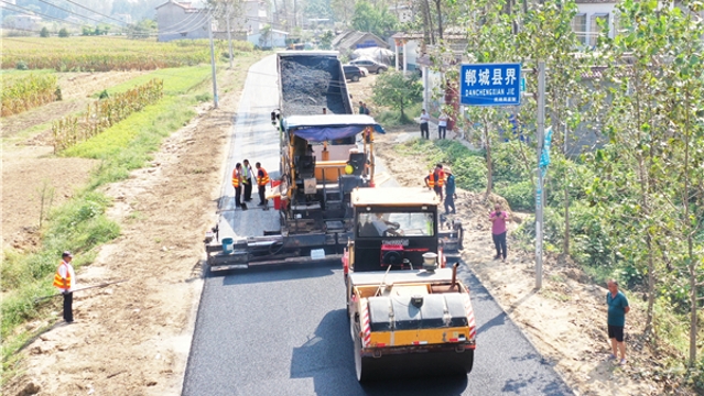 • 9月13日,記者在鄲城縣與淮陽(yáng)區(qū)重要連接通道張葛路(鄲城張完鄉(xiāng)至淮陽(yáng)葛店鄉(xiāng))搶修現(xiàn)場(chǎng)看到,經(jīng)過夜以繼日地前期搶修施工,目前正式進(jìn)入鋪油工序。待今年年底全線貫通后,鄲城縣張完鄉(xiāng)、汲水鄉(xiāng)、虎崗鄉(xiāng)、吳臺(tái)鎮(zhèn)、李樓鄉(xiāng)和淮陽(yáng)區(qū)葛店鎮(zhèn)沿線6個(gè)鄉(xiāng)鎮(zhèn)的數(shù)十萬居民將出行無憂,解除沿線數(shù)萬畝農(nóng)作物收割運(yùn)輸難題。