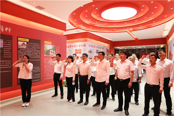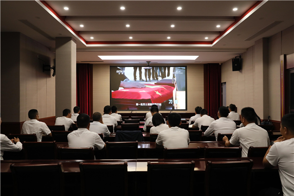 全體黨員面向黨旗集中宣誓,重溫入黨誓詞后,集中觀看學(xué)習(xí)黨史紀(jì)錄片《刀鋒》。