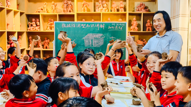 “這作品形象逼真,太生動(dòng)了?!弊蛉?,在張振福鈞瓷泥塑藝術(shù)館,同學(xué)們被一件件憨態(tài)可掬的泥塑作品驚呆了,看到活潑、歡快、形態(tài)各異的泥塑兒童造型,大家紛紛稱贊。
